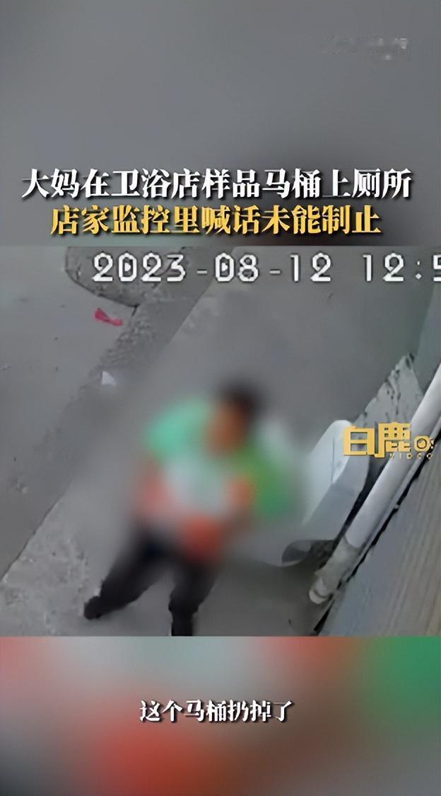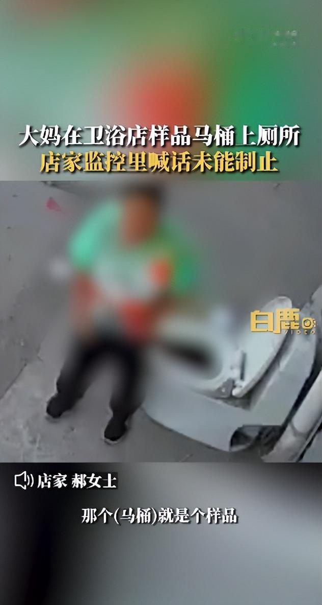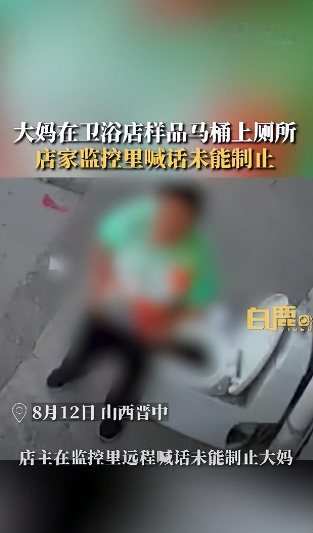 8月12日,据陕西网“白鹿视频”报道,8月12日,在山西晋中,大妈无视店家制止,在卫浴店门前的样品马桶上厕所。