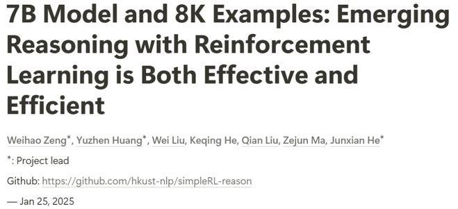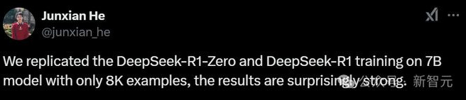 港科大助理教授何俊贤的团队(共同一作黄裕振、WeihaoZeng),只用了8K个样本,就在7B模型上复刻出了DeepSeek-R1-Zero和DeepSeek-R1的训练。