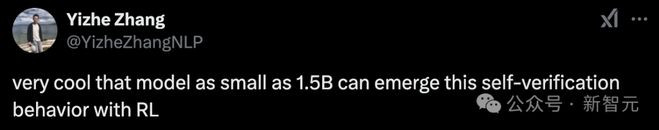 苹果机器学习科学家YizheZhang对此表示,太酷了,小到1.5B的模型,也能通过RL涌现出自我验证的能力。