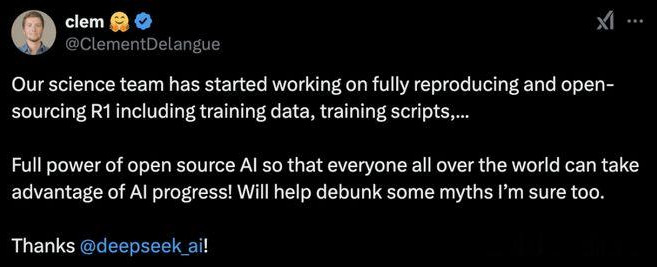 甚至,就连全球最大开源平台HuggingFace团队,今天官宣复刻DeepSeekR1所有pipeline。