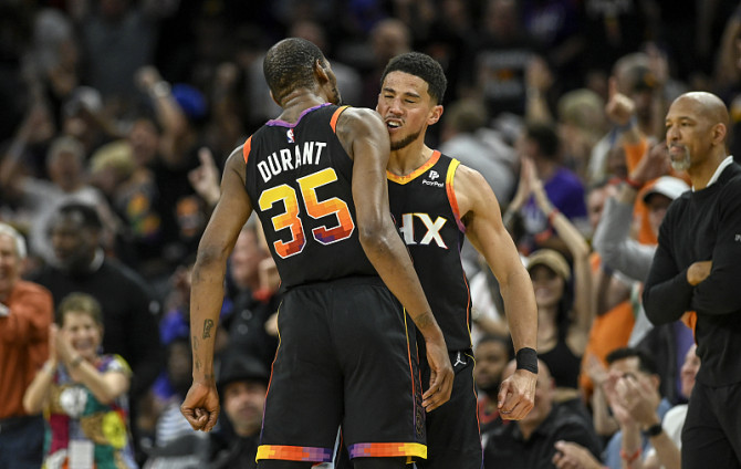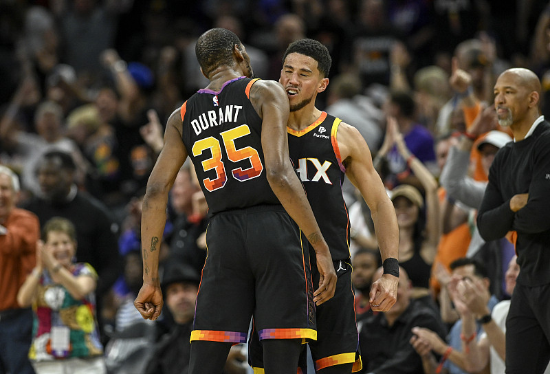 首节之争掘金虽然能够从被动追分到反超和太阳周旋,但约基奇整个上半场更喜欢送出传球而非实质性杀伤,他在一节半的时间里仅出手了3次让太阳感受不到太大的威胁。反观太阳虽然受困阵容厚度问题,但布克和杜兰特进攻端的杀伤力实在巨大,前者首节拿下18分扛着球队前进,后者次节拿下18分,在约基奇开始开火抢分的间隙,正是杜兰特疯狂拿分的时刻,太阳后半节轰出一波34-15的进攻高潮为太阳取得15分的半场领先。休息归来掘金开始发威,约基奇三节没打完就取得三双,穆雷则主攻拿下11分,掘金一度从半场落后15分到实现反超3分;不过末节布克和杜兰特再度联手,开局太阳一波9-2的攻势重新拉开比分,随后对攻中稳定输出将比赛收入囊中。最终,太阳主场121-114击退掘金扳回一城,总比分扳成1-2。