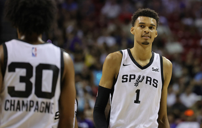 直播吧7月8日讯 NBA拉斯维加斯夏季联赛迎来焦点战,马刺首战面对黄蜂,今年的状元秀文班亚马和布兰登-米勒正面对话。米勒此前的加州赛中频频陷入犯规危机,而这也是文班亚马的夏联首秀,两人的直接交锋令人期待。