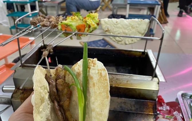 店主们早上6点半就跑到小饼厂家的门口,现场排队取号买小饼。桌上用来加热烤串的烤炉,原来50元左右一个,一度卖断了货,后来进货价涨到55元。每天用的鲜肉也靠抢,提前预定好,再派懂行的员工去取货,防止肉贩以次充好。