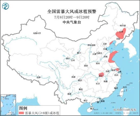 同时,需要注意的是,由于冷涡东移速度比较缓慢,因此位于冷涡南侧的辽宁、山东等地要持续防范强对流天气。明天,吉林中南部、辽宁北部、山东东部、江苏东北部和南部、湖北东部等地的部分地区将有8~10级雷暴大风或冰雹天气,局地风力可达11级。