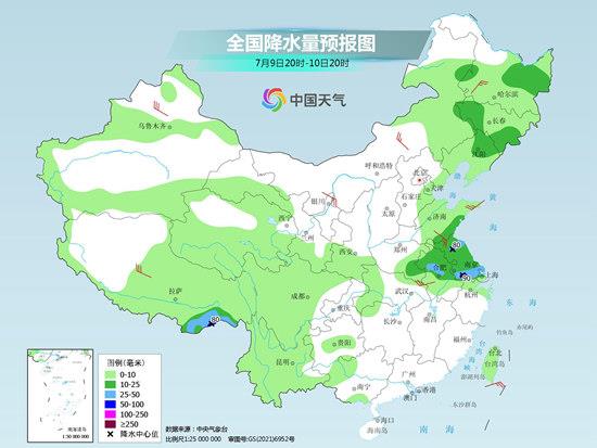 后天,长江沿线的强降雨带将明显北抬,大到暴雨的区域转移到安徽中北部、江苏北部和南部等地。