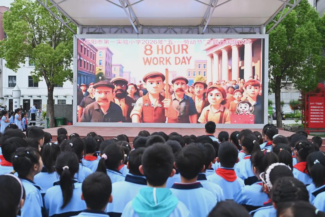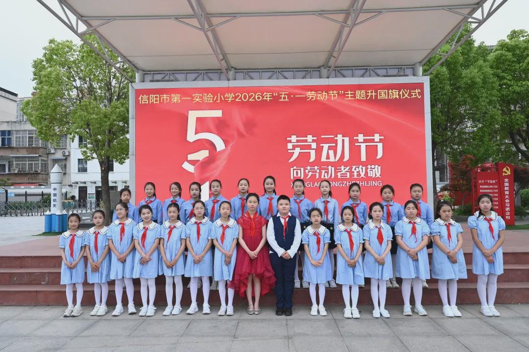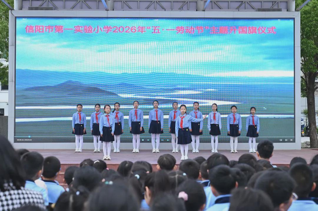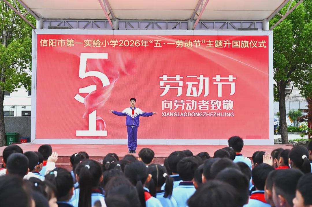 为迎接“五一”国际劳动节,弘扬劳动精神,引导少先队员尊重劳动、热爱劳动,4月27日,信阳市第一实验小学举行劳动节主题升国旗仪式,全体师生齐聚操场,共赴一场致敬劳动者的成长之约。