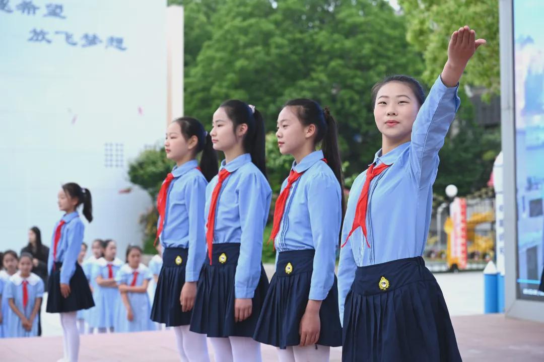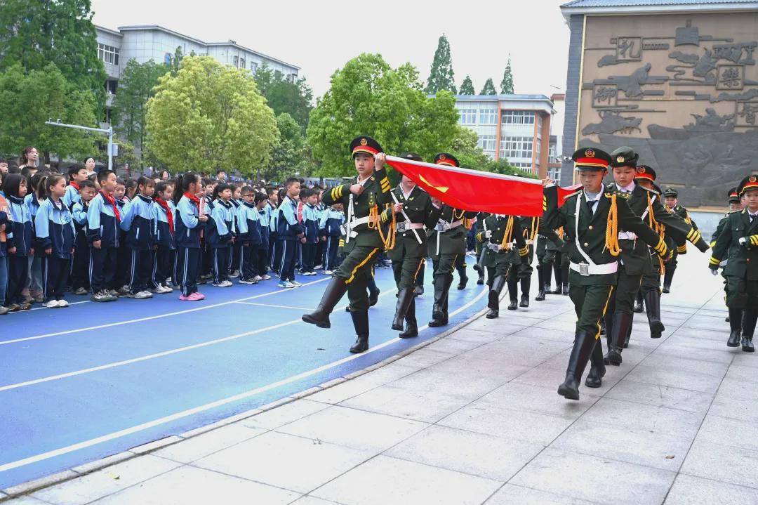 伴随着雄壮的国歌,五星红旗冉冉升起,全体师生肃立注目,少先队员行队礼,庄严的仪式感浸润心田。
