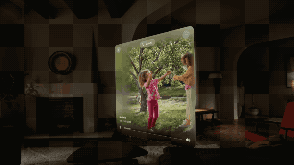你可以按下 Vision Pro 上的实体按钮,以 3D 影像和空间音频的形式拍下和家人共处的珍贵瞬间。
