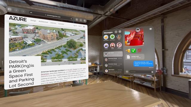 但神奇的是,app 会直接出现在你的房间里,每一个元素都有体积、阴影,你可以随时感受它的大小、位置。就像移动真实物品一样。