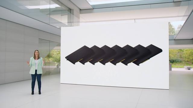 同时为了处理 12 个相机、5 个传感器以及 6 个麦克风的信息,苹果还带来了一颗全新的 R1 芯片,让图像可以在 12 毫秒内同步到 Vision Pro 的屏幕上,几乎做到了没有延迟,就像一切发生在你面前一般。