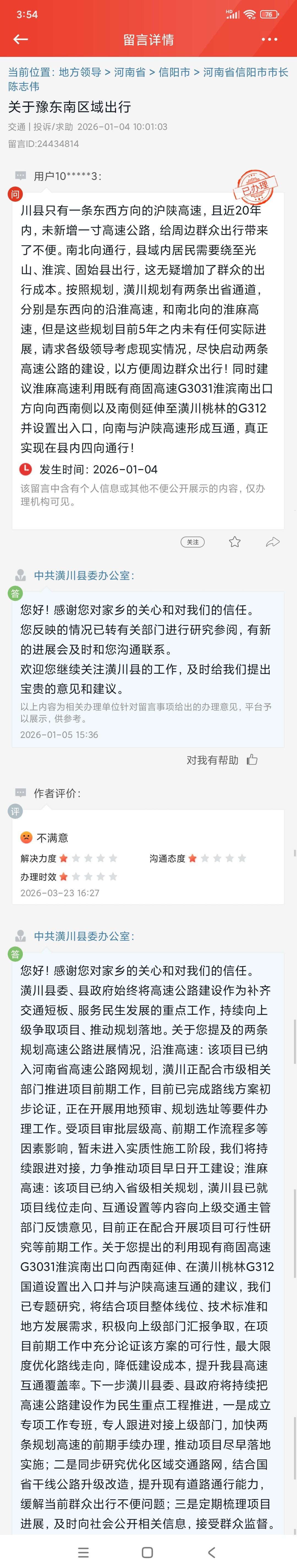 近期,一位:潢川县网友在人民网地方领导留言板留言: